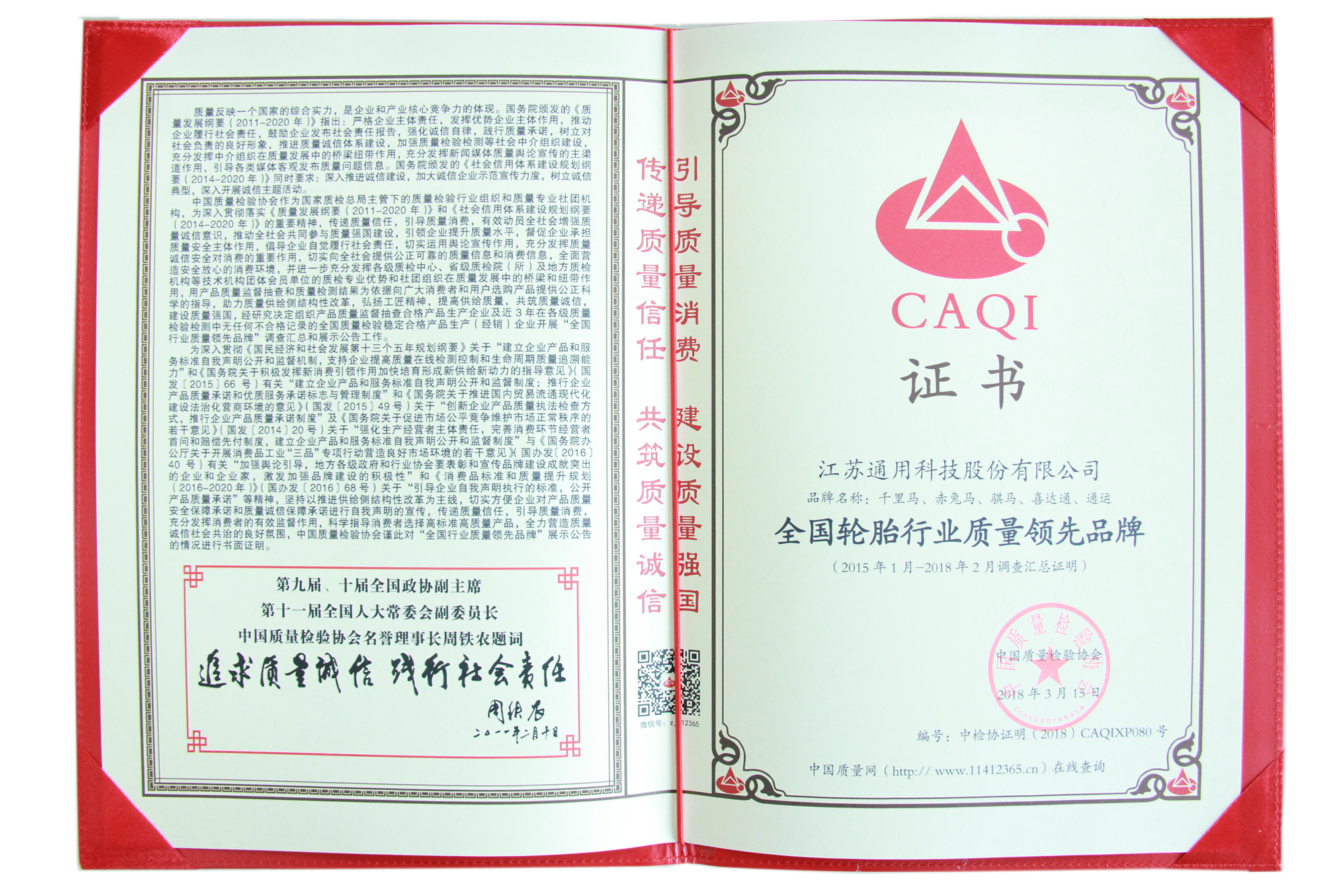 近日,在由國家質(zhì)檢總局和中國質(zhì)量檢驗協(xié)會聯(lián)合開展的“產(chǎn)品和服務質(zhì)量誠信承諾”主題活動中,通用股份榮獲“全國產(chǎn)品和服務質(zhì)量誠信示范企業(yè)”、“全國輪胎行業(yè)質(zhì)量領先品牌”稱號。