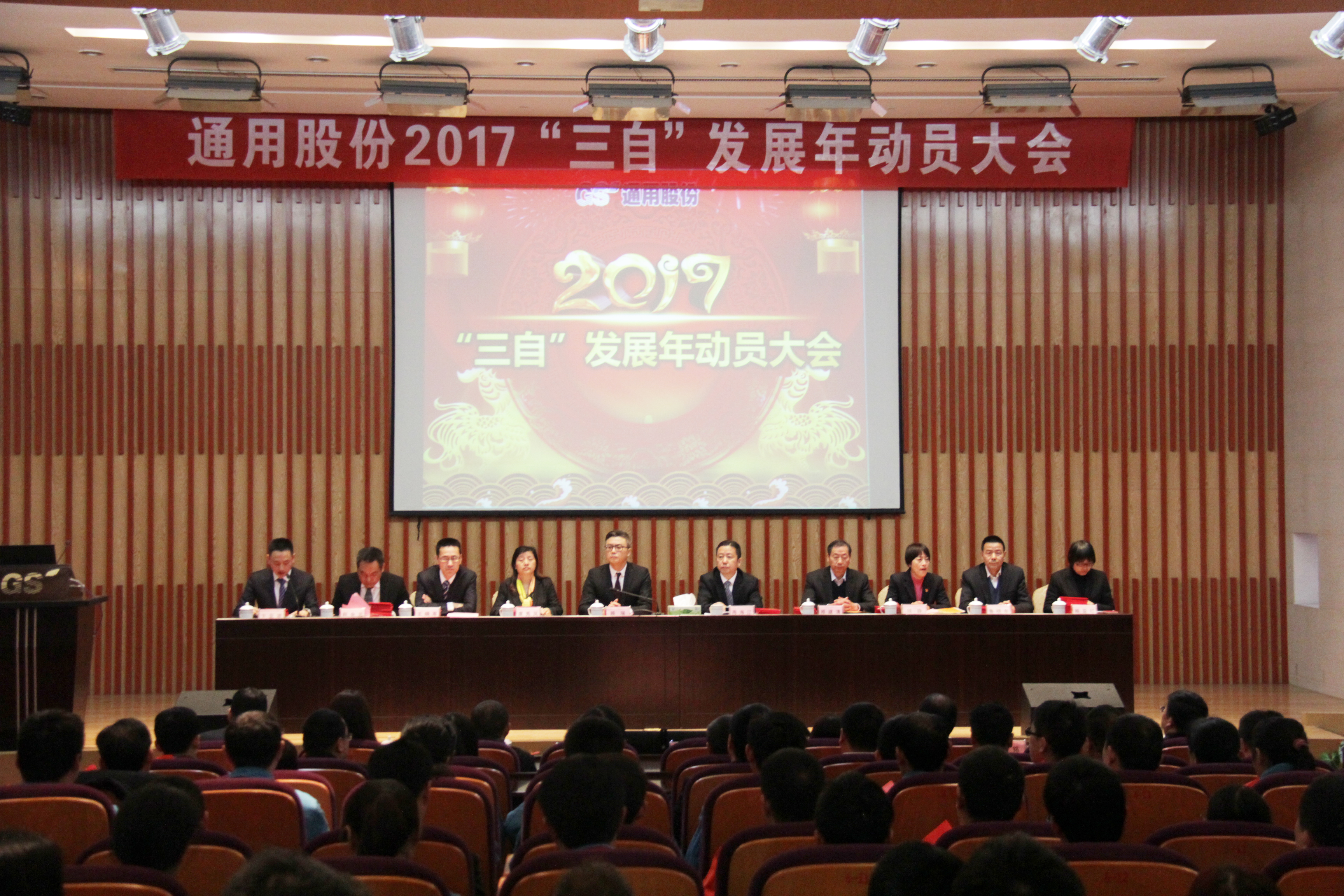2月4日,農(nóng)歷正月初八,通用股份召開(kāi)2017年新春動(dòng)員大會(huì),紅豆集團(tuán)董事局主席周海江、通用股份董事長(zhǎng)顧萃、總經(jīng)理王曉軍等領(lǐng)導(dǎo)出席會(huì)