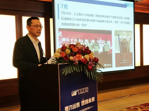 通用股份董事長顧萃先生在會(huì)議上作了“賦能2018”的重要主題演講?;厥?017,顧董對(duì)宏觀經(jīng)濟(jì)和行業(yè)情況進(jìn)行了生動(dòng)解讀。展望2018,顧董以“大、新、快、鏈”四個(gè)字闡述了當(dāng)下時(shí)代的發(fā)展趨勢(shì),探討了智能化以及創(chuàng)新思維對(duì)未來工業(yè)和生活的深遠(yuǎn)影響。通用股份將從“制造、產(chǎn)品、營銷、管理、服務(wù)”五大賦能促進(jìn)變革發(fā)展,搶占先發(fā)優(yōu)勢(shì),智能制造升級(jí),全球化視野布局,全方位提高效率,做最好的自己。