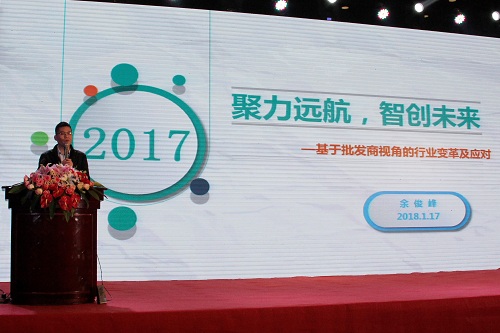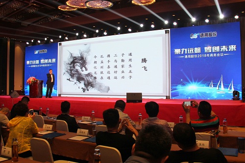 榮成市隆通貿(mào)易有限公司總經(jīng)理張黎明在大會(huì)上作了題為“騰飛 2018”的主題演講,他從定位、服務(wù)、客戶管理三個(gè)渠道入手,向與會(huì)者分享了成功的營銷經(jīng)驗(yàn)和營銷體系構(gòu)建案例,為代表們?nèi)蘸笤谑袌?chǎng)上攻城拔寨提供了可實(shí)施性的參考經(jīng)驗(yàn)。