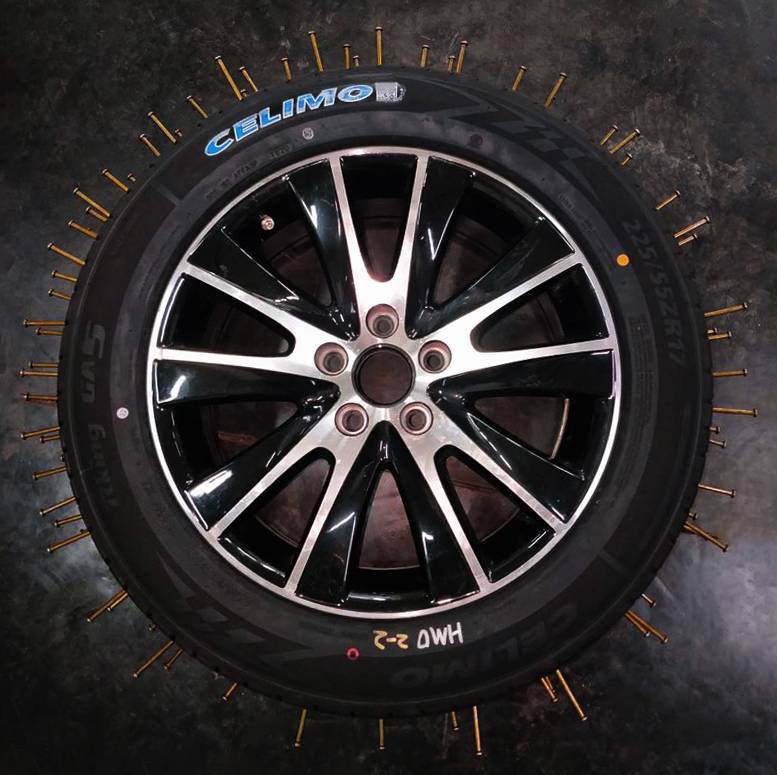 當(dāng)釘子等尖銳物體被拔出時(shí),膠料涂層又將自動(dòng)聚攏在穿孔處,填充和密封好輪胎缺口處,防止氣體外泄,從而實(shí)現(xiàn)自動(dòng)修復(fù)的功能。第三方實(shí)驗(yàn)室數(shù)據(jù)表明,即使被100個(gè)釘子刺入輪胎胎面,千里馬抗扎胎也無需補(bǔ)胎,當(dāng)釘子全部拔出后,千里馬抗扎胎仍然可以正常使用,保持良好的氣密性。