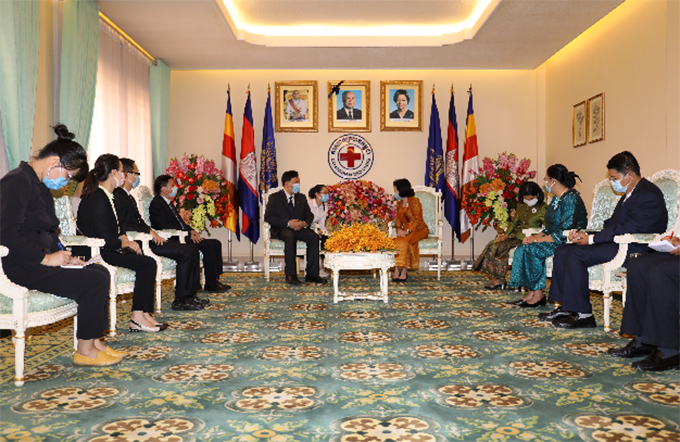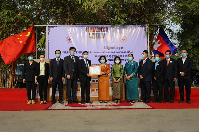 柬埔寨王國當(dāng)?shù)貢r間4月1日下午4:00(北京時間17:00),一場“紅豆集團(tuán)捐贈柬埔寨紅十字會100萬只口罩接收儀式”正在柬埔寨紅十字會會長、柬埔寨王國首相洪森夫人文拉尼親王的辦公室內(nèi)舉行。中國駐柬埔寨大使館經(jīng)濟(jì)商務(wù)參贊處參贊鄔國權(quán)、西哈努克港經(jīng)濟(jì)特區(qū)公司總經(jīng)理曹建江和柬埔寨紅十字會副會長ANY SOKAN、秘書長POM CHANNY,柬埔寨紅十字會衛(wèi)生局局長SOK LONG等出席活動。