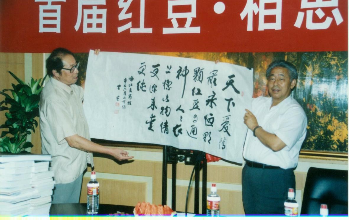 正如丁芒老先生所說:我與紅豆有緣!2002年,丁芒再次來到了紅豆集團(tuán),這次也是因?yàn)?ldquo;七夕節(jié)”。第二屆紅豆七夕節(jié)活動(dòng)的主題是詩詞,而詩詞又是丁芒老先生最擅長的領(lǐng)域,所以紅豆集團(tuán)再次邀請(qǐng)丁芒前來助陣。當(dāng)時(shí),紅豆集團(tuán)與中華詩詞學(xué)會(huì)、中華詩詞雜志社、無錫市委宣傳部聯(lián)合舉辦了紅豆詩詞大賽,開先河的設(shè)立一等獎(jiǎng)20萬元人民幣,累計(jì)獎(jiǎng)金40萬元“尋當(dāng)代王維”,在中國詩壇轟動(dòng)一時(shí)。丁芒老先生被邀請(qǐng)作為大賽的初評(píng)和終評(píng)評(píng)委,著名作家、南京市作家協(xié)會(huì)顧問馮亦同老先生也是當(dāng)時(shí)的評(píng)委之一。據(jù)悉,當(dāng)天的新聞發(fā)布會(huì)就引來了《人民日?qǐng)?bào)》、《光明日?qǐng)?bào)》等100多家新聞媒體,同時(shí)也邀請(qǐng)到了賀敬之、柯巖等10多位文壇名家。